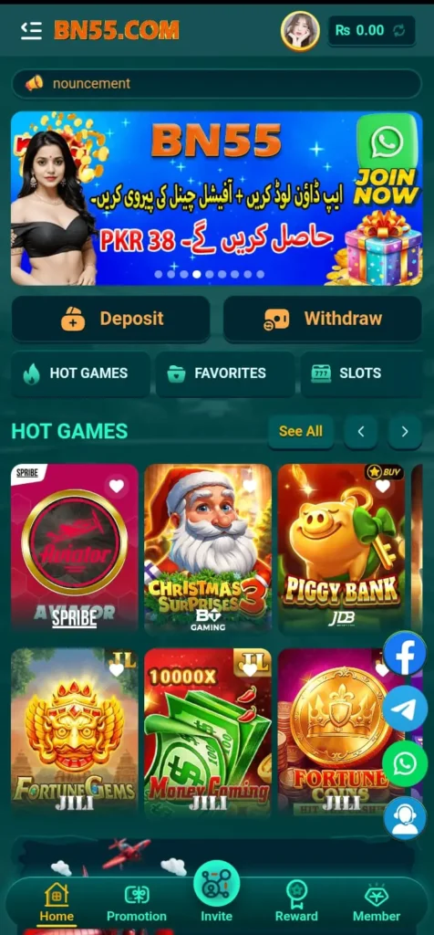 Bn55 Game is an online earning and entertainment platform that allows users to play engaging games and win real cash rewards. Designed mainly for Android devices, it offers a variety of casino-style and card-based games such as Teen Patti, Rummy, Slots, and Poker. What sets it apart is its seamless integration of local payment systems, making it especially popular in countries like Pakistan and India.