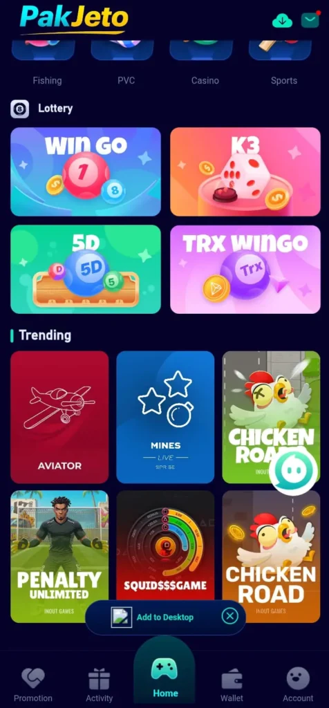 Players can choose from multiple game categories. Whether you prefer skill-based options or light entertainment, Pak Jeeto App offers something for everyone.
