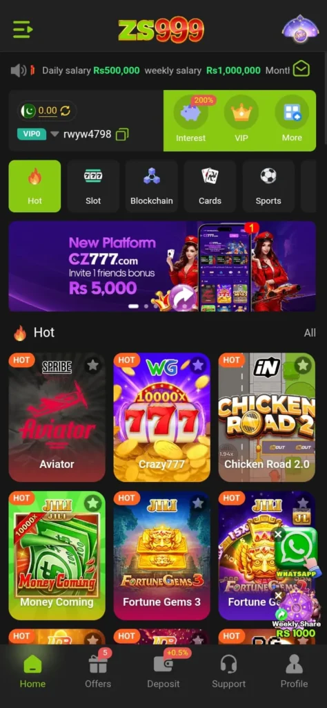 ZS999 Game is an online gaming platform designed to provide entertainment through interactive and engaging gameplay options. It allows users to participate in different game modes while enjoying smooth performance and user-friendly navigation. Also try This Platform Newly Launch in Pakistan Qaidi804 Game Download and earn Real Money.